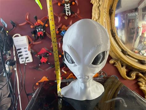 Grey Alien Head Bust, Intricate 3D Printed Sci-fi Extraterrestrial, UF
