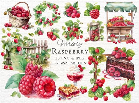 Raspberry Bundle 35Pc PNG & JPEG Bundle | Watercolor Raspberry Clipart | Raspberry PNG | Raspberries Commercial | Printable Raspberry Art
