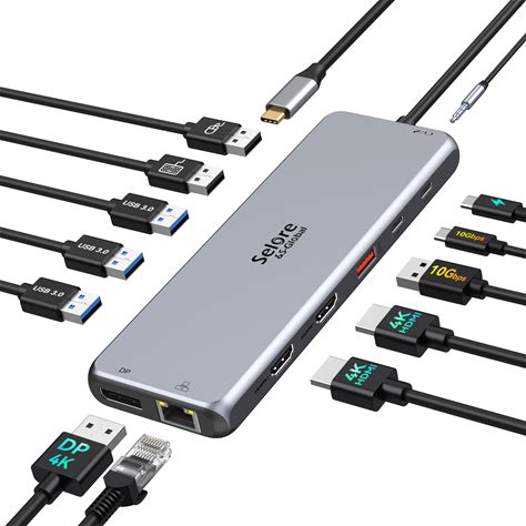 USB C Docking Station Dual Monitor, 13 in 1 Laptop Docking Station Triple Monitor Hub, USB C Dock To 2 HDMI, Displayport, 100W PD, USB C 3.1 Data, USB 3.1/3.0/2.0, Ethernet, Audio For Macbook/Dell/HP