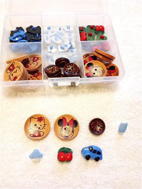 Assortment Of Children's Buttons Made Of Plastic 70 Buttons In A Sorting Box