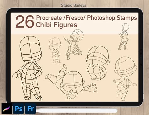 26 Chibi Figures Pose, Procreate/ Photoshop Chibi Stamp Body Guide Brush Figure Manga Kawaii Cartoon, Procreate Anime ,Procreate Kids Figure