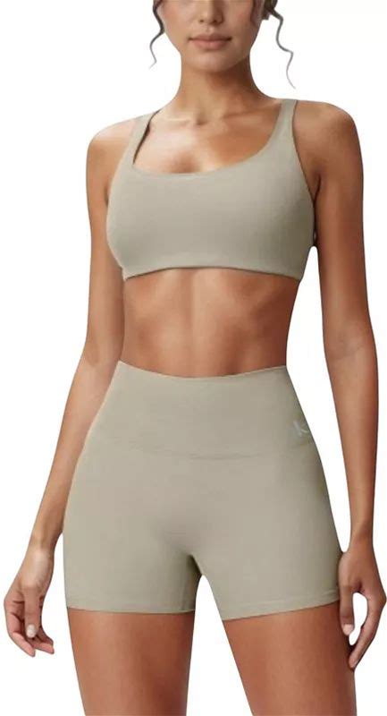 Women's Scoop Neck Sports Crop Top With Wide Shoulder Straps And Seamless Fit, Size: Medium, Beige