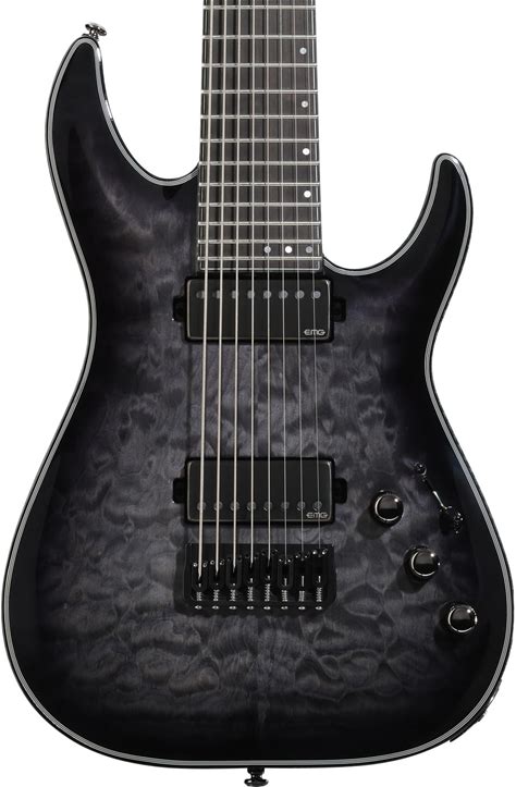 Schecter Hellraiser Hybrid C-8 Electric Guitar - Trans Black Burst 8-String Solidbody Electric Guitar With Quilt Maple Top, Mahogany Body, Maple