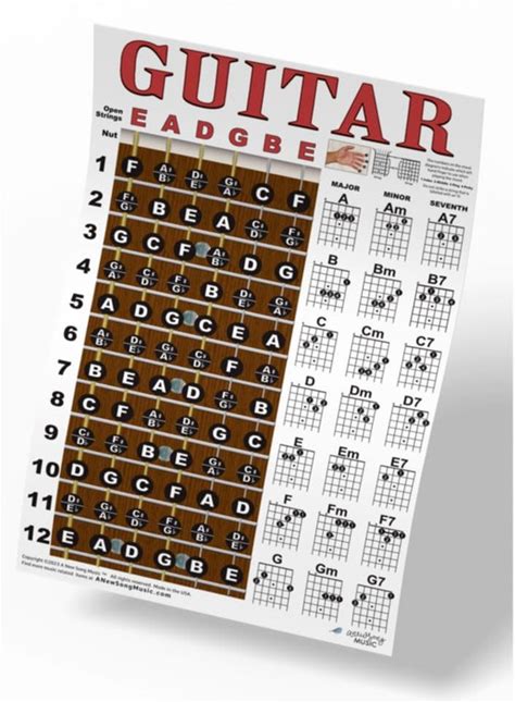 A New Song Music Guitar Chord & Fretboard Note Chart Instructional Easy 11"X17" Poster For Beginners Chords & Notes