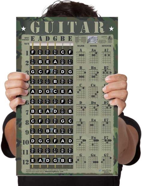 A New Song Music Laminated Guitar Chord & Fretboard Note Chart Instructional Easy Poster For Basic Beginners Chords & Notes 11"X17"