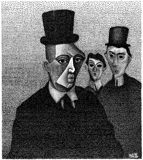 Cubist Kafka Men Stipple Art, Abstract Surreal Portrait, Original Ink Drawing, Pointillism Dot Art, Ink On Paper, Hand-Drawn Unique Artwork