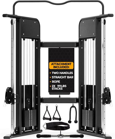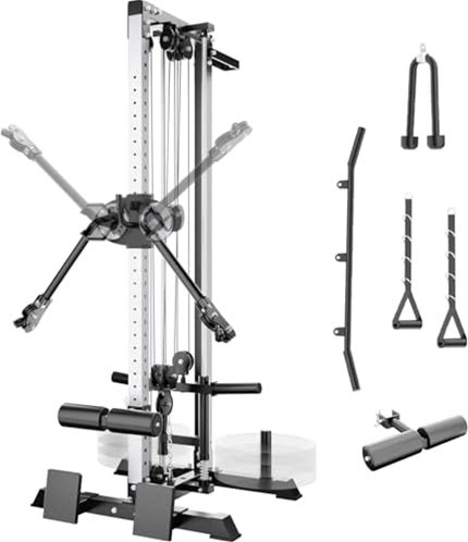 Eonfit Cable Machine For Home Gym, LAT Pulldown Cable Crossover Machine Workout Station Pulley System Tower With Leg Holder, LAT Bar, Foot Board Accessories