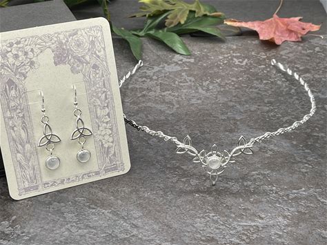 Handmade Sterling Silver Celtic Knot Bridal Set: Moonstone Circlet & Earrings, Irish Jewelry, Celtic Diadem, Celtic Earrings, Gift For Her