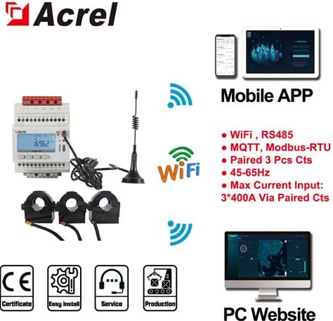 Indoor Series Universal Voltage 3-Phase 3W/4W Modbus Meter Kits, 600Y/347 Rated Voltage, DIN-Rail Mo