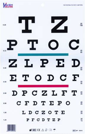 Traditional Snellen Eye Chart With Red Green Bar Visual Acuity Test 6m / 20ft